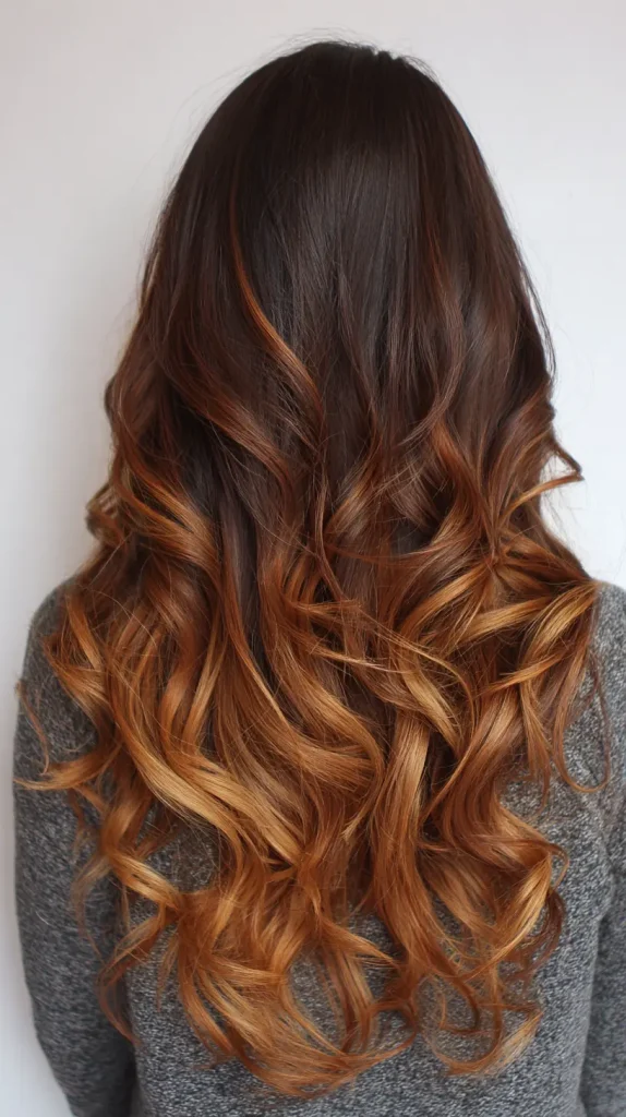 For those seeking a natural sun-kissed look, the deep brown to golden blonde ombre is a perfect choice. The golden ends add warmth and brightness to dark hair, creating a youthful and glowing appearance. This style works well year-round but especially shines in warmer months when it complements natural skin tanning. The subtle lightening at the tips provides dimension and movement, making hair look fuller and more dynamic. It’s a great option for anyone who wants a low-maintenance style with a healthy, vibrant finish.